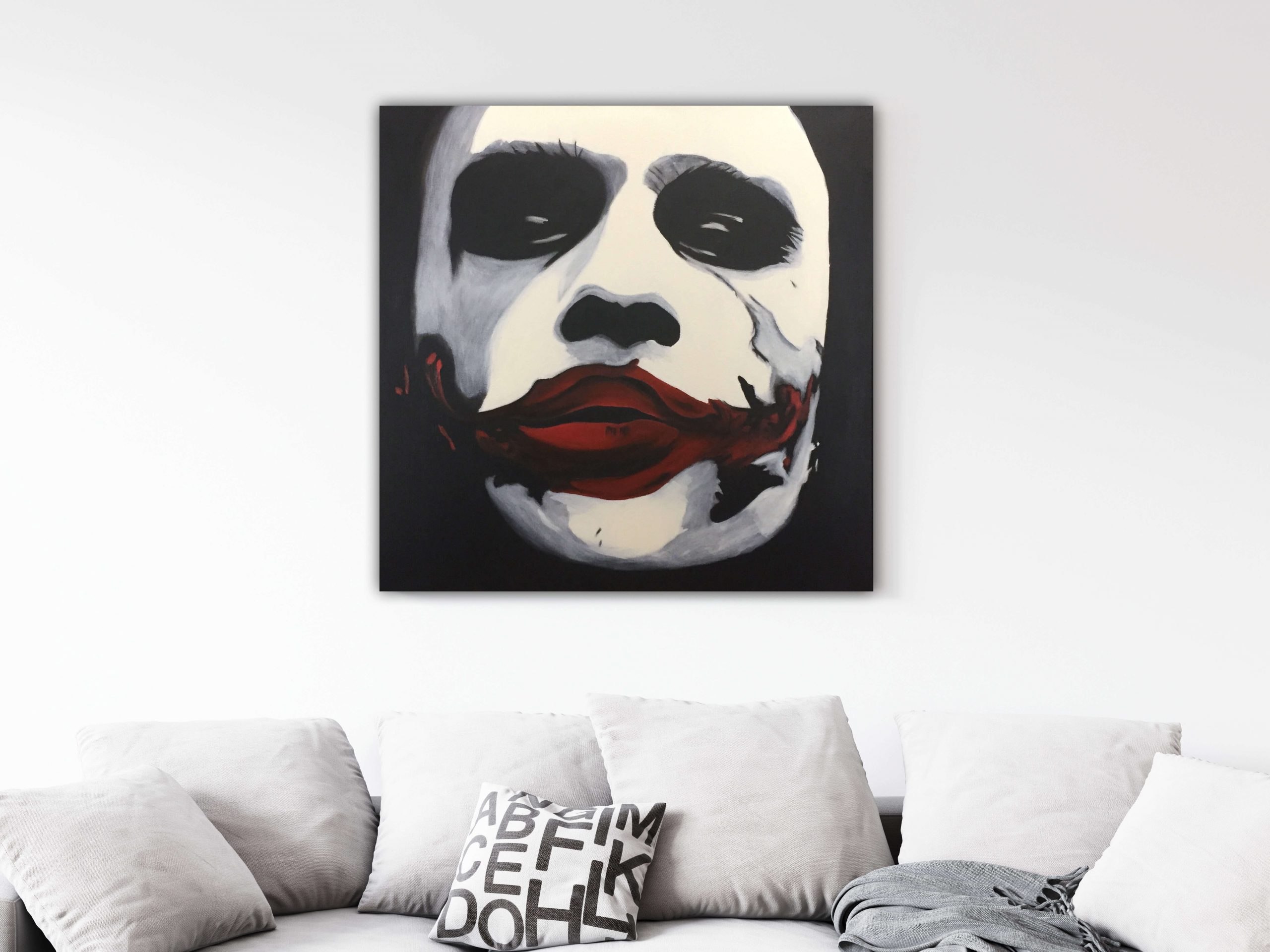 This is my original oil painting of Heath Ledger as The Joker from Batman – The Dark Knight